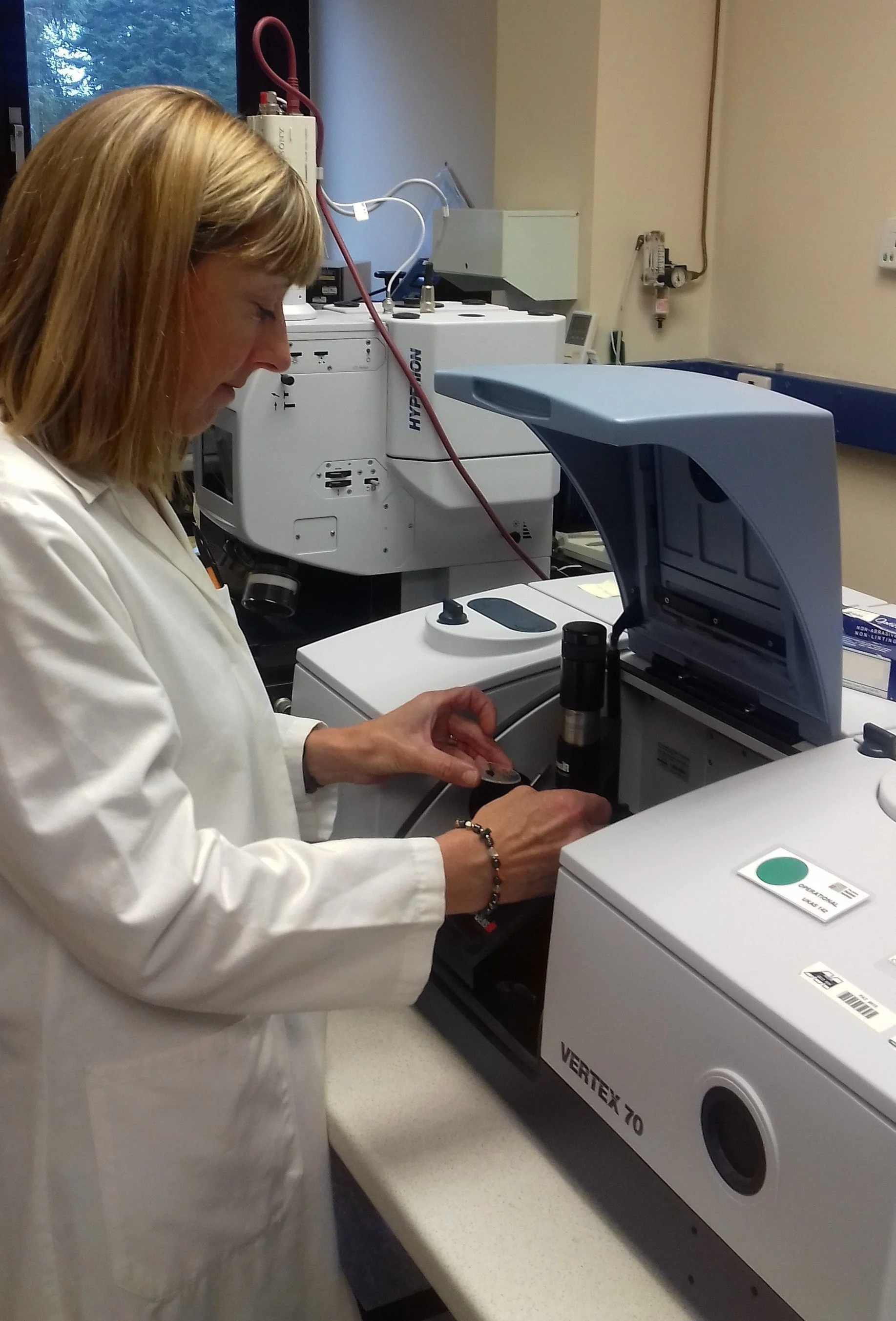 Angela Main loading a sample. Environmental and Biochemical Sciences JHI