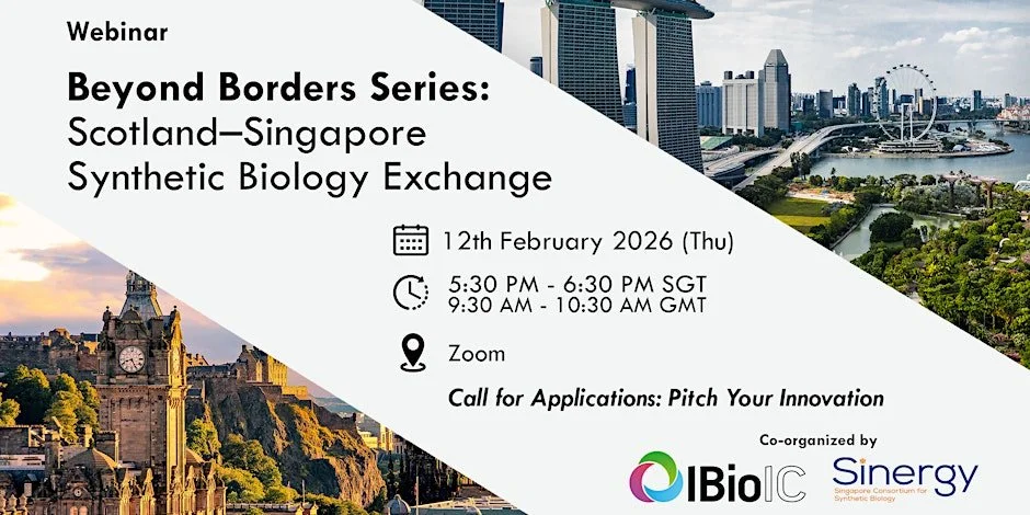 Join us for the second Beyond Borders Series: Scotland–Singapore Synthetic Biology Exchange on 12 February 2026. This webinar brings together academia and entrepreneurs from both regions to share insights, explore collaboration opportunities, and spotlight emerging companies in the synthetic biology space. Co-organized by IBioIC and SINERGY, the session will feature sharings from both consortia and company pitchings highlighting capabilities and partnership opportunities from both countries.