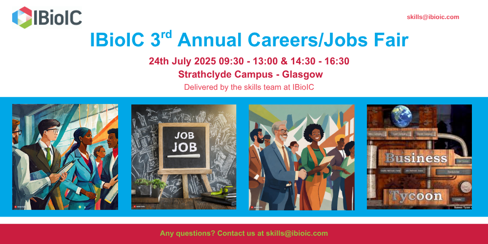 We’re excited to announce the return of IBioIC’s 3rd Annual Careers & Jobs Fair, taking place on Thursday 24th July 2025 at the University of Strathclyde, Glasgow – and registration is now open for exhibitors and student attendees!